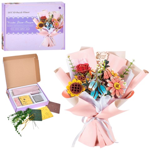 3D-пазли "Букет з квітами" — конструктор з дерева та пластику.
