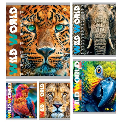 Зошити учнівські 48 аркушів клітинка Тверда Дикий світ, 10 шт. в упаковці
