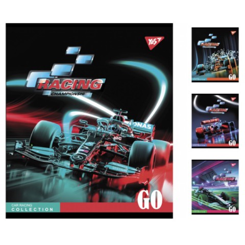 Зошити учнівські 48 аркушів клітинка Yes Racing championship з матовим ВДЛ, вибірковим УФ-лаком і мікроембосингом, 5 шт. в упаковці