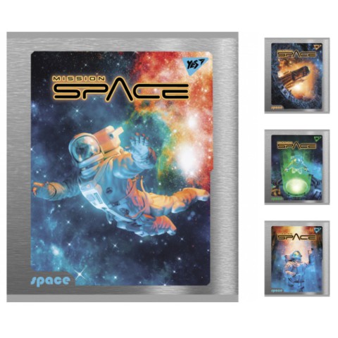 Зошити учнівські 48 аркушів клітинка Yes Space з матовим ВДЛ, вибірковим УФ-лаком і мікроембосингом, 5 шт. в упаковці – Шкільний аксесуар (48 аркушів, YES) у клітинку з обкладинкою в космічному стилі, з матовим ВД-лаком, вибірковим УФ-лаком і мікроембосингом. Щільність паперу 55 г/м², кріплення на скобу, кольоровий друк CMYK. Упаковка містить 5 штук. Зручний для нотаток і креслень. Надихає на космічні мрії. Замовляйте на Demsky.com.ua для захопливого навчання!