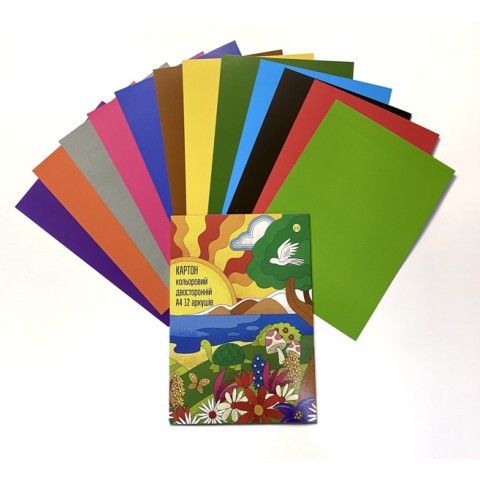 Картон кольоровий двосторонній Тетрада, А4, 12 аркушів