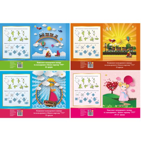Набір білого та кольорового картону і паперу А4, ТМ "Тетрада", 21 аркуш,