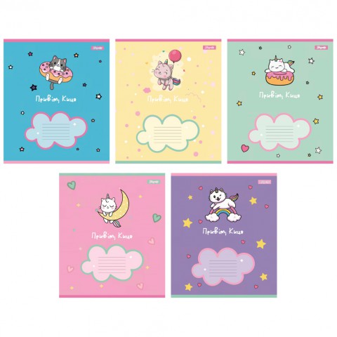 Зошити учнівські 12 аркушів клітинка 1B Привіт Киця, 25 шт. в упаковці