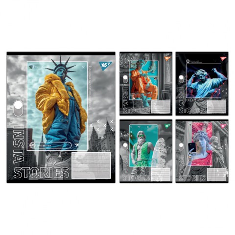 Зошити учнівські 36 аркушів клітинка Yes Insta Storys, 15 шт. в упаковці
