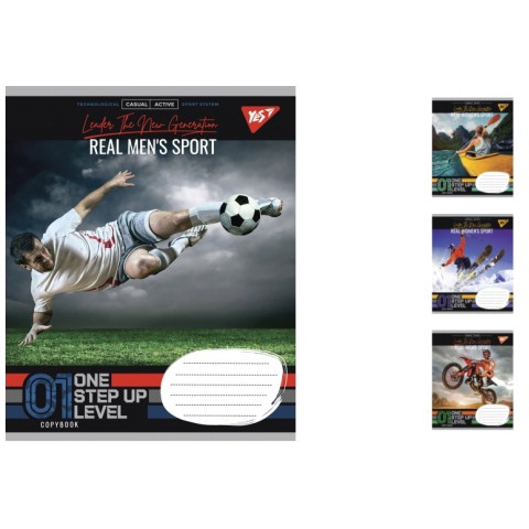 Зошити учнівські 36 аркушів клітинка. YES Real sport, зошит дя записів 15 шт. в упаковці