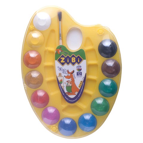 Фарби акварельні на палітрі, 12 кольорів, натуральний пензель, жовтий
