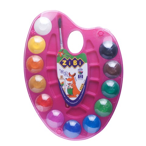 Фарби акварельні на палітрі, 12 кольорів, натуральний пензель, рожевий