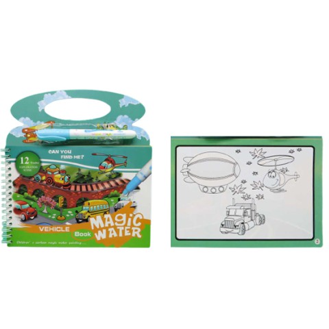 Альбом для розфарбовування водою, Транспорт, 20x14 см, 4 аркуші, із маркером — захоплююча розвага для малюків! 4 аркуші дозволяють розфарбовувати зображення транспорту лише водою за допомогою спеціального маркера. Компактний формат і тематика транспорту ідеально підходять для юних дослідників.