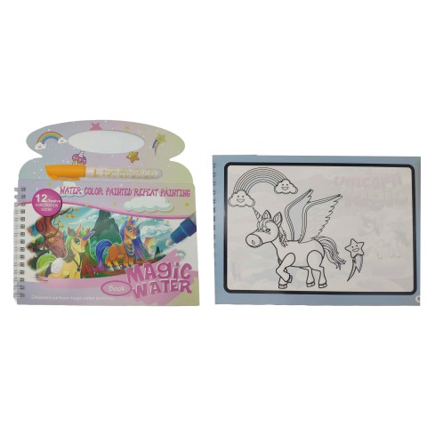 Альбом для розфарбовування водою, Єдиноріг, 20x14 см, із маркером — це магія для маленьких художників! Завдяки спеціальному маркеру діти можуть розфарбовувати картинки водою, створюючи яскраві зображення єдинорогів. Компактний формат ідеально підходить для творчості будь-де.