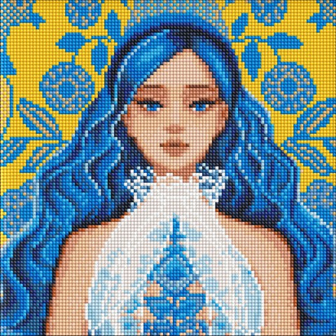 Алмазна мозаїка без підрамника "Витончена україночка" AMC7684 з АВ стразами 30х30 см