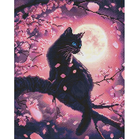 Алмазна мозаїка "Чарівний кіт серед сакури" AMO8220, 40х50 см