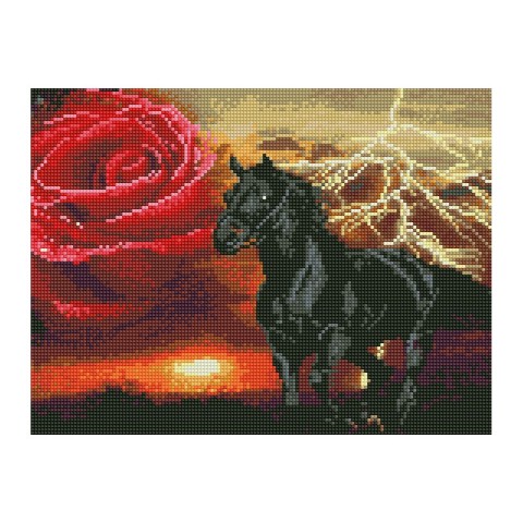 Алмазна мозаїка "Чорний кінь" EJ1364, 40х30 см