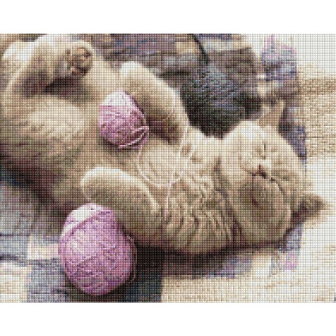 Алмазна мозаїка "Кошенятко з клубочком" DBS1020, 40х50 см