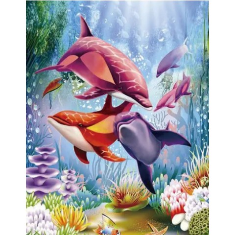 Алмазна мозаїка на підрамнику Дельфіни 40×50 см 71294_BGLE