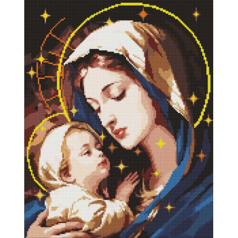 Комплект включає все необхідне: полотно з клейовим шаром на дерев'яному підрамнику, різнокольорові стрази, стилус, гель та інструкцію. Процес викладання розслабляє, знімає стрес та розвиває творчі здібності – чудове хобі для дорослих та підлітків. Готова картина стане ніжним акцентом у вітальні чи спальні, символізуючи тепло материнської любові.