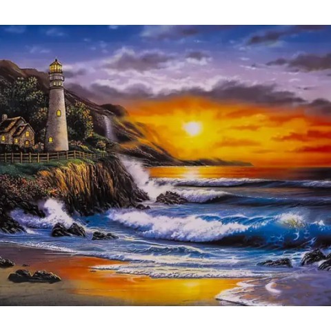 Купіть алмазну мозаїку на підрамнику Маяк 40×50 см для морської естетики!