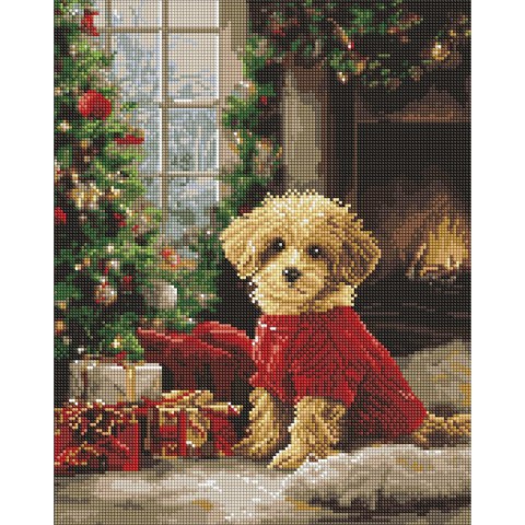 Алмазна мозаїка "Пудель біля ялинки" AMO20011, 40х50 см