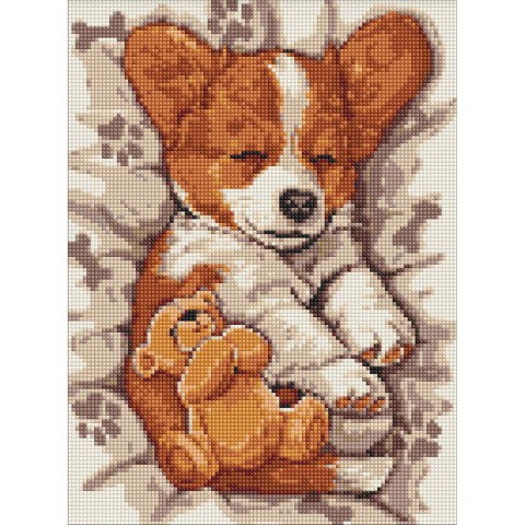 Алмазна мозаїка - Сонний коргі ©art_selena_ua для вашої творчості в інтернет-магазині Ideyka. Виготовлено в Україні.