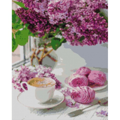 Алмазна мозаїка "Бузок та кава" DBS1106, 40x50 см