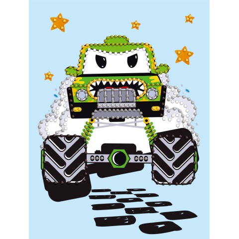 Алмазна мозаїка вибіркова Машинка зелена 15×20 см – зелена машинка! Стрази, шаблон. Для дітей.