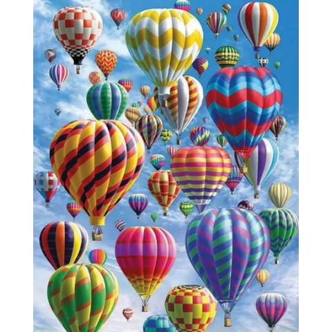 Алмазна мозаїка на підрамнику Повітряні кулі 40×50 см 71456_BGLE – мрійливий сюжет з повітряними кулями над краєвидом. Підрамник, стрази для об'ємного ефекту, ідеально для релаксації та творчості дорослих.