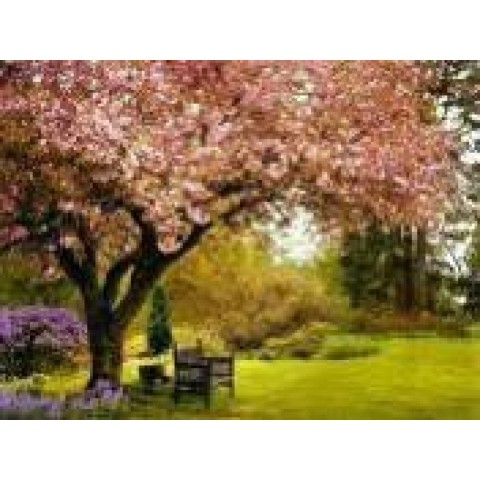 Алмазна мозаїка за номерами Скамейка під деревом, 30x40 см, полотно на рамі
