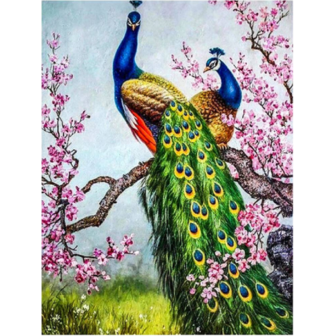Алмазна мозаїка за номерами Павліни, 30x40 см, полотно на рамі