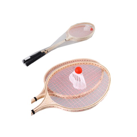 Набір для бадмінтону дерев’яний, 2 ракетки 66 см, воланчик, у сітці