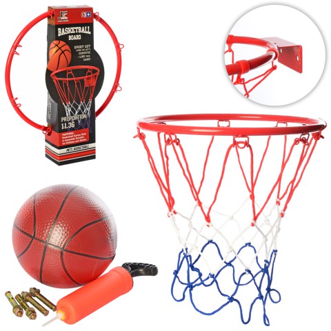 Баскетбольне кільце, металеве 32 см, сітка, м’яч, насос, кріплення