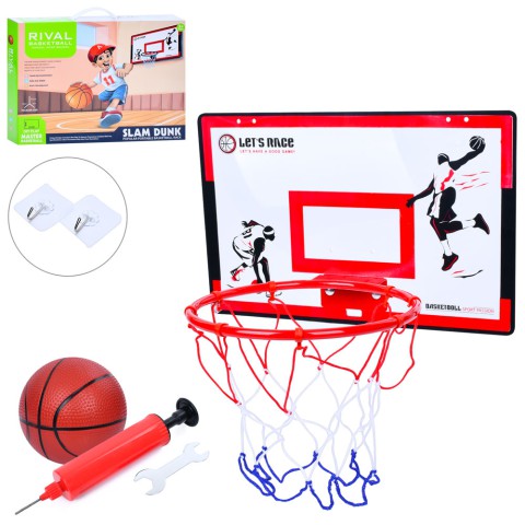 Баскетбольне кільце, пластиковий щит 39.5x26 см, металеве кільце 25 см, сітка, м’яч, насос
