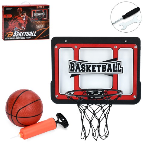 Баскетбольне кільце, пластиковий щит 43x32 см, металеве кільце 25 см, сітка, м’яч, насос, кріплення