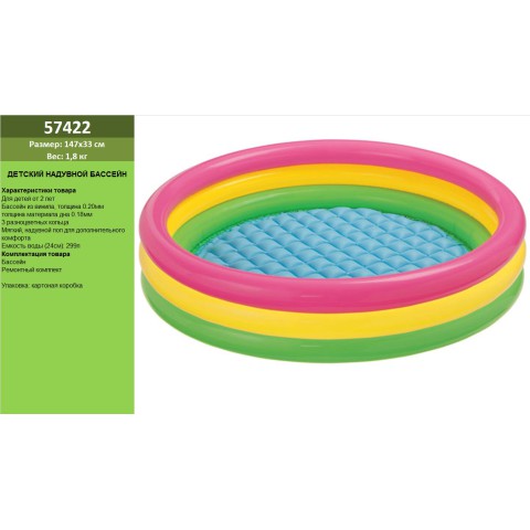 Басейн, 147x33 см, 355 л, від 3 років, 57422 — це надувний басейн для дитячих розваг! Вміщує 355 л води, ідеально підходить для дітей від 3 років. Розмір 147x33 см і міцний матеріал забезпечують безпеку та комфорт для літніх водних ігор на подвір’ї чи дачі.