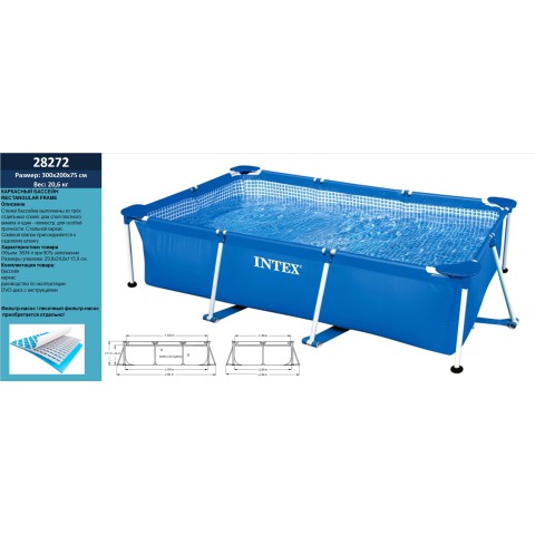 Басейн каркасний прямокутний, 300x200x75 см, 28272 — це великий каркасний басейн для сімейного відпочинку! Розмір 300x200x75 см забезпечує комфорт для дітей від 6 років і дорослих. Міцна конструкція гарантує безпеку та довговічність для літнього дозвілля.