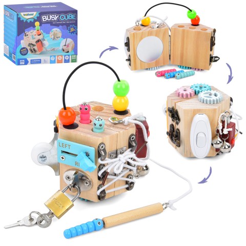 Бізікуб, вимикач, колесо, магнітна гра, дзвіночок, шнурівка