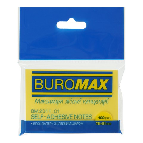 Блок для нотаток розміром 51x76 мм, 100 аркушів, жовтий, 4 шт. в упаковці. Яскравий колір ідеально підходить для помітних записів у школі чи офісі.