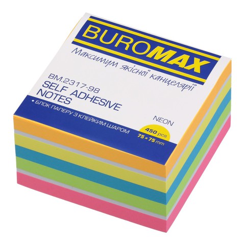 Блок для нотаток з клейким шаром, 75x75 мм, 450 аркушів, неон (В асортименті) BM.2317-98