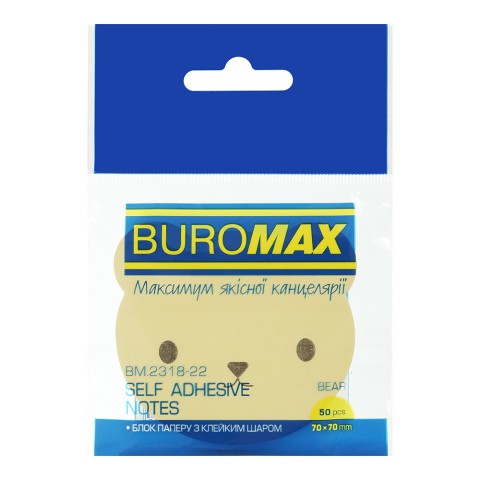 Блок для нотаток із клейким шаром Bear, 70x70 мм, 50 аркушів, пісочний, 4 шт. в упаковці. Дизайн із ведмедиками ідеально підходить для школи чи офісу.