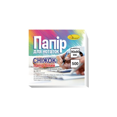 Блок паперу для нотаток "Сніжок" ББН-9-9 500 аркушів, не клеєний, куб