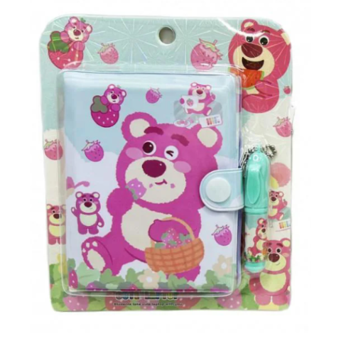 Блокнот на кнопці ПВХ з ручкою-брелоком Ведмідь, 8x10 см, 45 аркушів (В асортименті)
