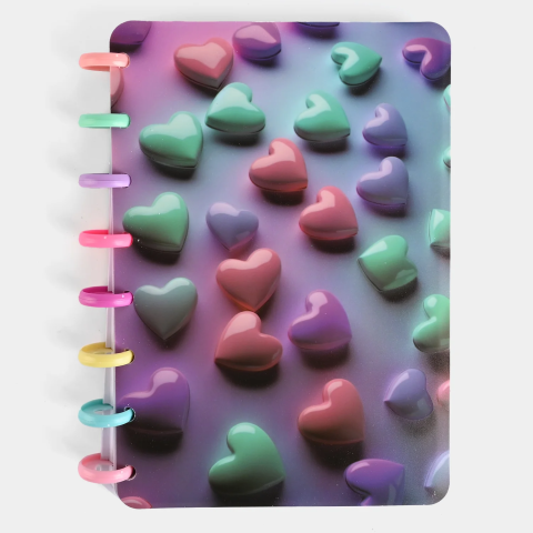 Блокнот на спіралі ПВХ Сердечки об’ємні, А5, 100 аркушів, клітинка (В асортименті)