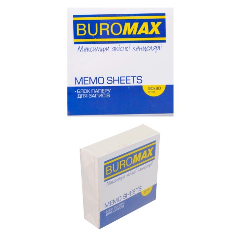 Склеєний блок білого паперу Jobmax розміром 90x90x30 мм. Ідеально для щоденних записів у школі, офісі чи вдома. Компактний і зручний для використання.
