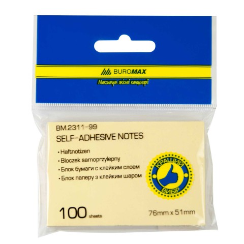 Компактний блок для нотаток розміром 51x76 мм, 100 аркушів, 12 шт. в упаковці. Ідеально для швидких записів у школі чи офісі. Якісний папір забезпечує зручність.