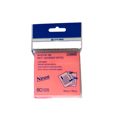 Блок для приміток Neon розміром 76x76 мм, 80 аркушів. Яскравий неоновий колір додає енергії для записів у школі чи офісі.