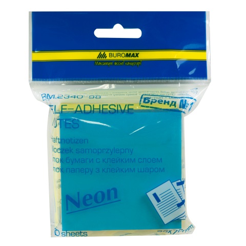 Блок для приміток Ukraine розміром 76x76 мм, 300 аркушів із неоновим декором. Патріотичний дизайн ідеально підходить для помітних записів у школі чи офісі.