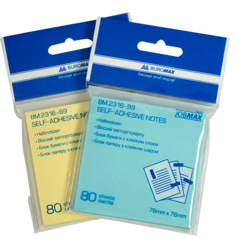 Блок для нотаток Jobmax, 76x76 мм, 80 аркушів, 4 шт. в упаковці (В асортименті)