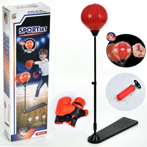Боксерський набір, груша 20 см, стійка 103 см, 2 рукавички, насос, світло, електронне табло на батарейках - інтерактивний набір із грушею 20 см, стійкою 103 см, 2 рукавичками, насосом, світлом і електронним табло. Для дітей від 8 років, розвиває реакцію. Доступний на demsky.com.ua.