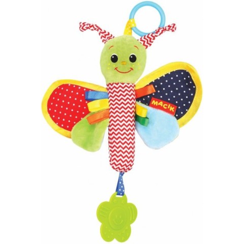 Забавна іграшка створена для наймолодших «дослідників».Малюки будуть в захваті. Можна натиснути на дзвінку пискавку, пом'яти шелесткі крильця або спробувати «смачний» прорізувач, доторкнуться до іграшки, і вона почне дзвінко пищати.Метелик приємний і м'який на дотик, тому що виконаний з натуральних слинопоглинаючих матеріалів.Завдяки універсальному кріпленню іграшку можна закріпити на колясці, ліжечку, автокріслі або дугах розвиваючого килимка.Склад: бавовняна тканина; різнофактурні матеріали; швейна фурнітура; звукові елементи; холлофайбер.Розмір: 20х19х4 см.Розмір в упаковці: 23х10х3 см.