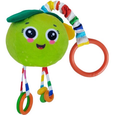 Брязкальце-підвіска з прорізувачем Яблуко привертає увагу малюка яскравим дизайном, сприяє гармонійному розвитку, відволікає від дискомфортних відчуттів у період прорізування зубів. Для цього у яблука є листочок, що шарудить, «гримілка» всередині яблука, намистини та кільця для перебирання та стукання, текстурний прорізувач.Захоплюючі ігри з іграшкою сприяють розвитку слуху, зору, тактильного сприйняття, моторики, хапальних навичок.Іграшку можна підвішувати на дугах розвиваючого килимка, ліжечку, колясці. Для цього передбачене роз’ємне кільце.Вироблено в Україні.