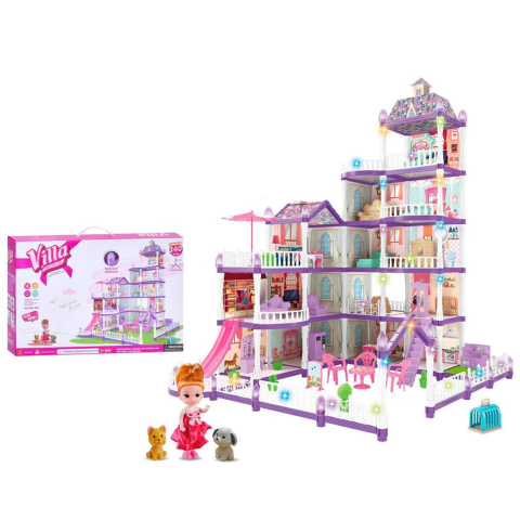 Будиночок 5 поверхів, світло, меблі, лялька 11 см, тварини, 340 деталей, 48x32x10 см (В асортименті)