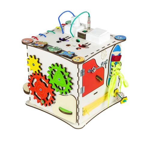Наповнення полів елементами зроблено відповідно до рекомендацій дитячих педагогів і психологів, що гарантує наявність у іграшках всього необхідного для розвитку і цікавого дозвілля ваших діток. Розвиваючий кубик не займає багато місця і підійде як для великої квартири, так і для маленької кімнати. Також він стане відмінною заміною великої кількості іграшок і його можна легко взяти в дорогу або подорож.